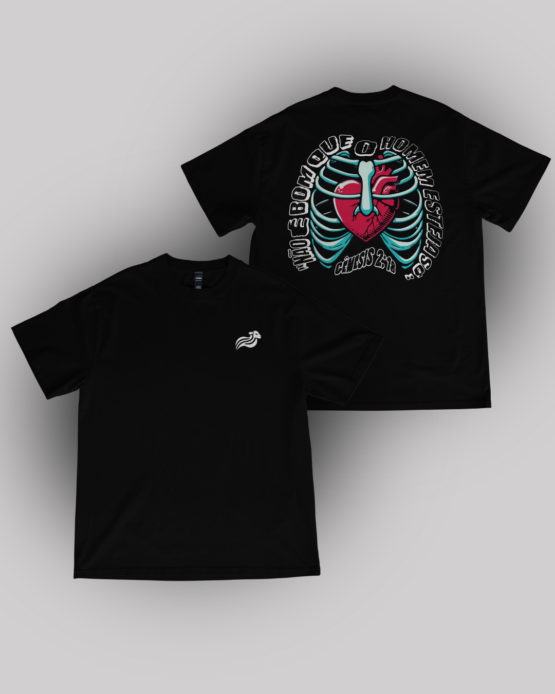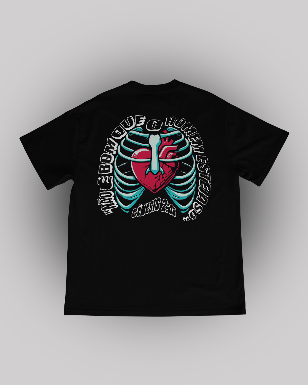 Inspirada em Gênesis 2:18, essa camiseta oversized traz uma mensagem profunda sobre conexão e propósito: “Não é bom que o homem esteja só.” A estampa apresenta um coração dentro de uma costela, simbolizando a criação de Eva a partir de Adão—um poderoso lembrete do plano divino para a união.